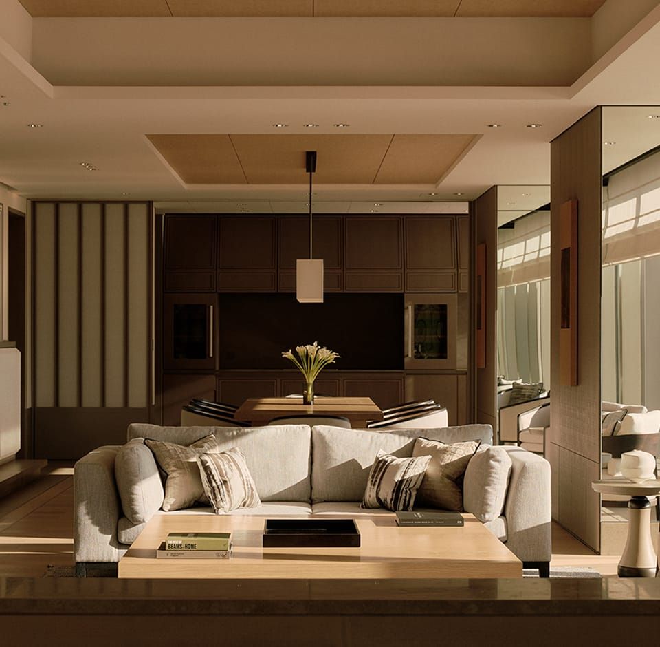 最高峰のデザインとプライバシーに配慮し設計された邸宅は、専用エレベーターロビーで各住戸にアクセスが可能。平穏と静けさに包まれたアマンならではの空間を堪能できる特別なレジデンスです。